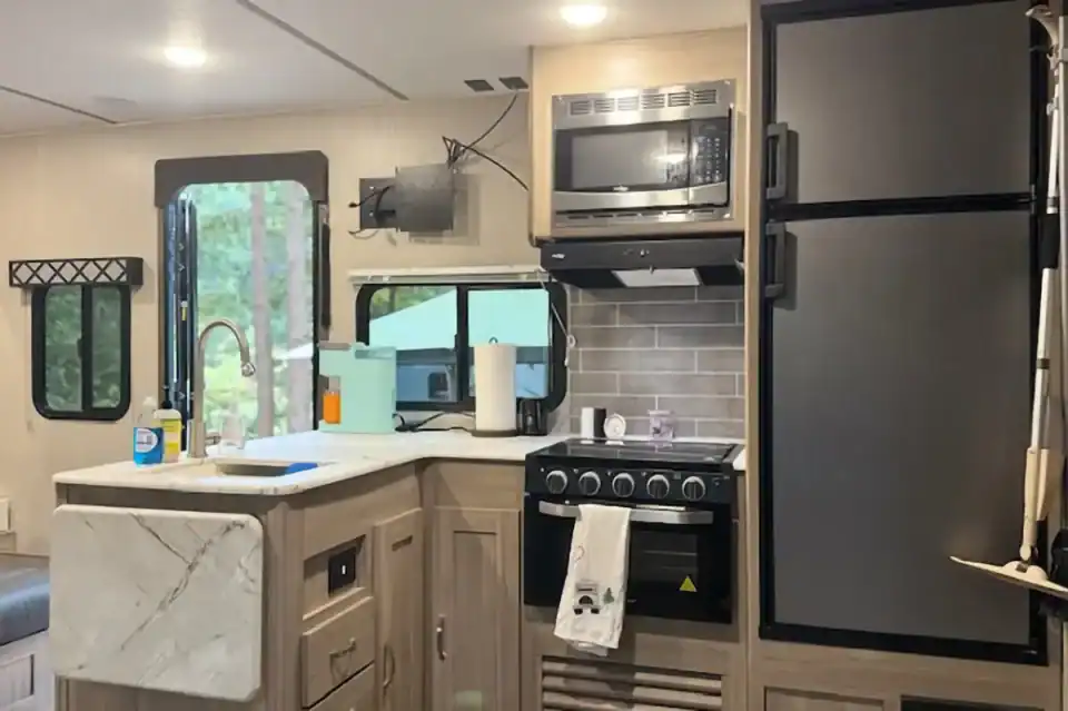 Home/Trailers/2021 Freedom Express 238BHS2021 Freedom Express 238BHSAvailableTravel TrailerPhoto GalleryDescription:Grey toned floor plan with full size bunk bed, bathroom with tub, queen murphy bed, dinette with slide, and plenty of storage! Specifications