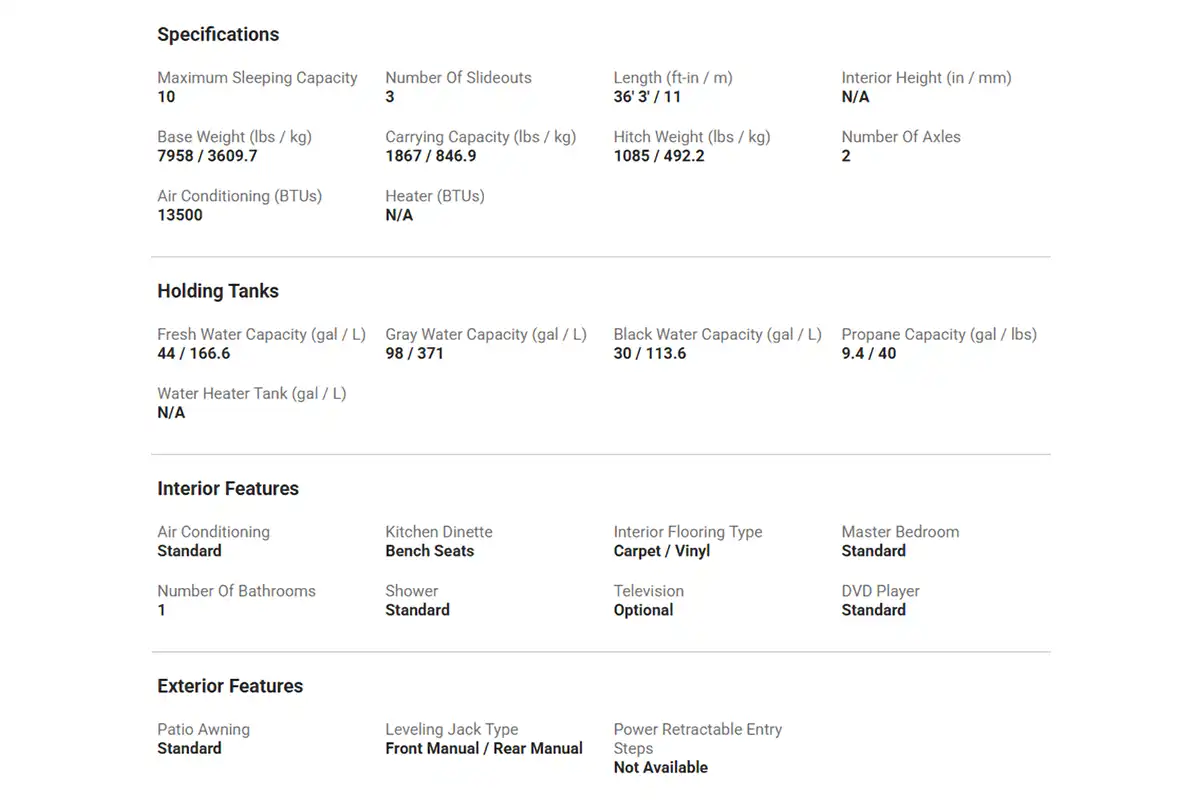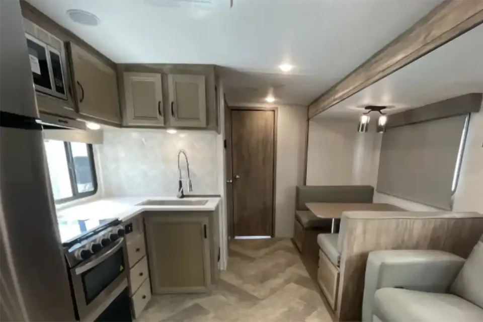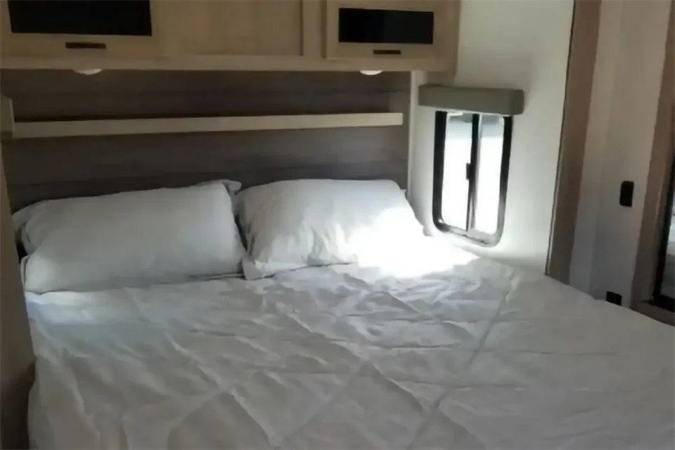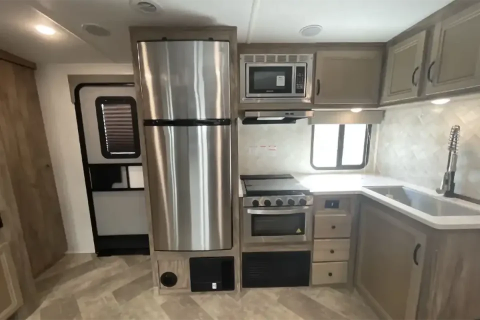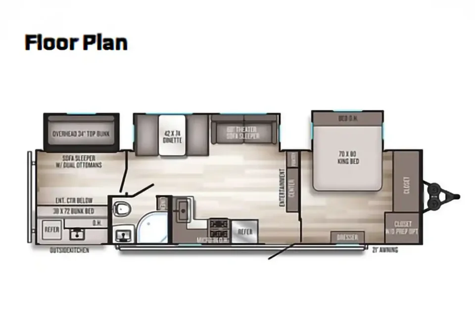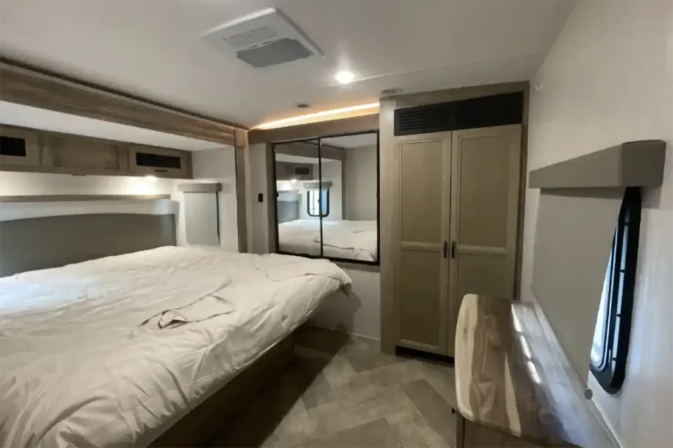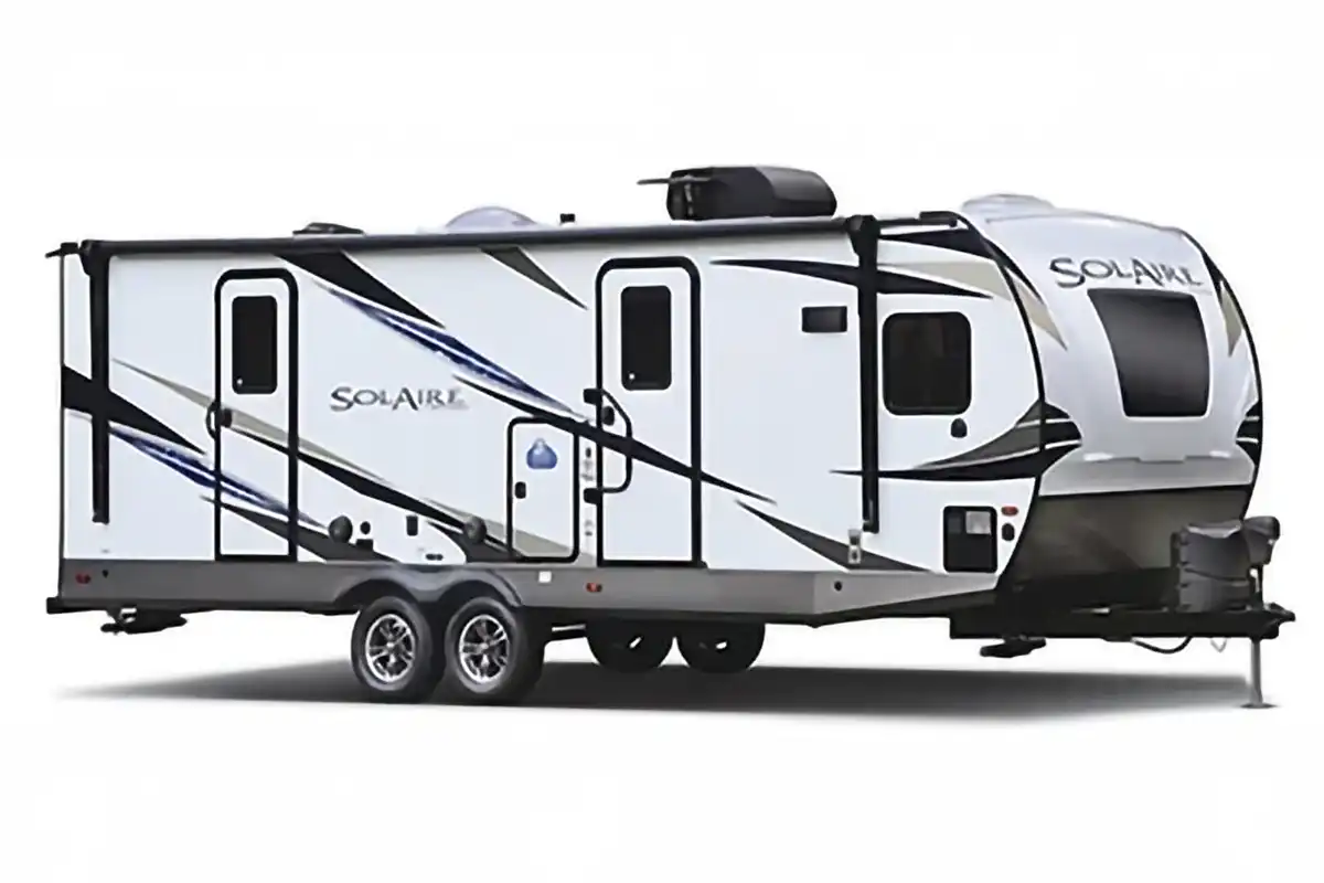 Home/Trailers/2023 Palomino Solaire 320TSBH2023 Palomino Solaire 320TSBHAvailableTravel TrailerPhoto GalleryDescription:Two bedroom travel trailer with rear triple bunk and master king bedroom with closet for washer/dryer hook up! Banquette table, large kitchen sink, middle bathroom. Specifications