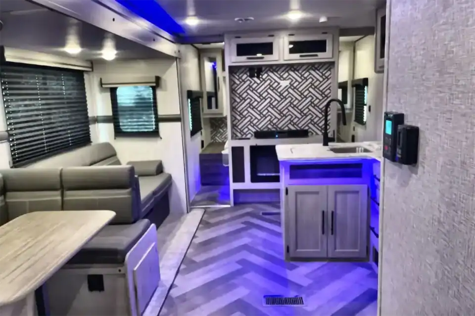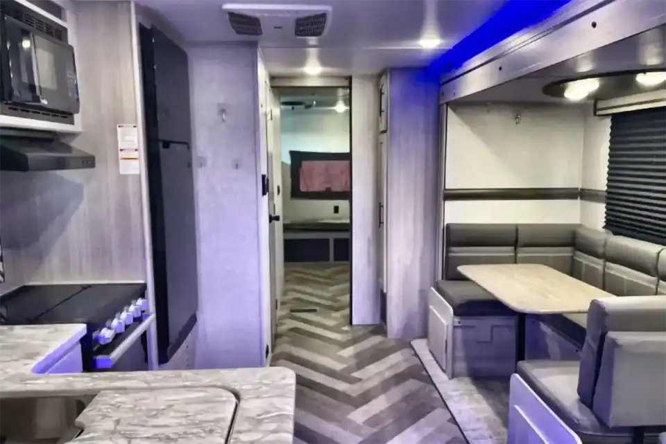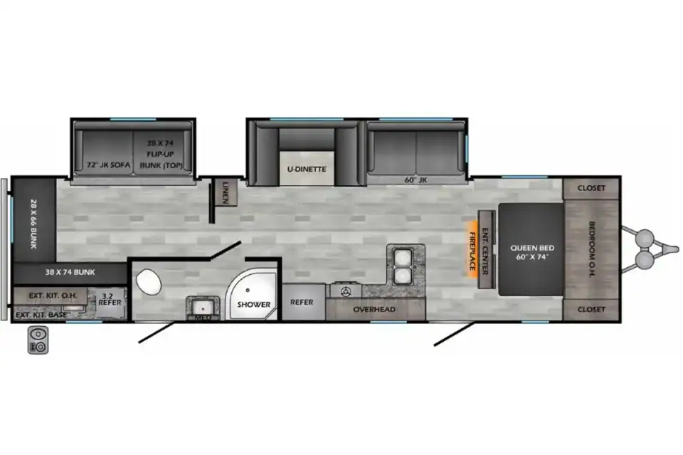 Home/Trailers/2024 Crossroads RV Zinger Series M-328SB2024 Crossroads RV Zinger Series M-328SBAvailablePhoto GalleryDescription:Less than 2 years old! Two bedroom travel trailer with rear triple bunk, front queen master, tv/fireplace area, uplighting throughout with a more modern design. Bathroom with separate entrance, and outdoor kitchen area. Specifications